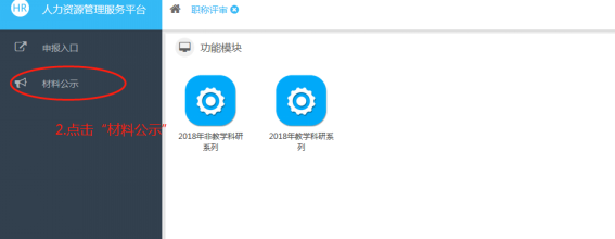 (2)点击左侧“材料公示”条目,再点击蓝色的公示标题;