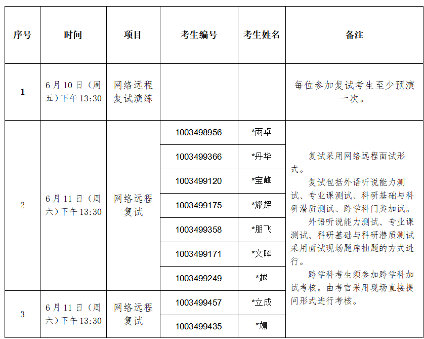 6月10日(周五)下午13:30-16:30,考务人员将与考生进行一对一远程面试平台预演,预演时将考察考生的双机位设备、网络、考试环境。
