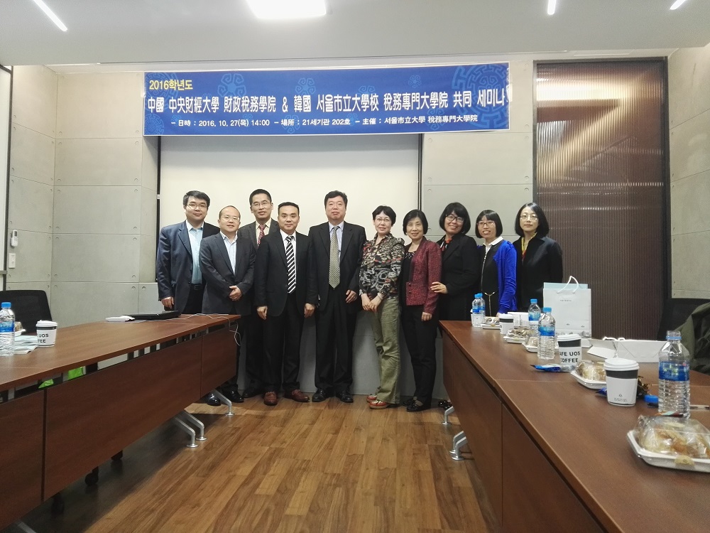 伟德国际1946bv党委书记樊勇教授等9人于2016年10月26日至2016年10月28日受邀赴韩国首尔参加首尔市立大学税务专门大学院举办的“中韩税制改革和税务学科教学工作”的学术研讨会。首尔市立大学校长元允喜教授10月26日下午会见了中方老师,希望加深同伟德victor1946的学术交流,推动财政税务学科的发展。