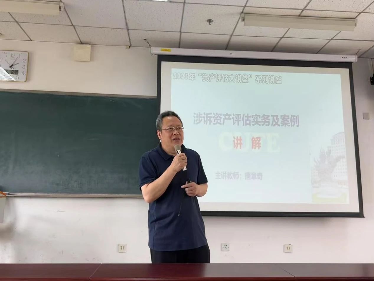 2025年5月8日下午,我院副院长李小荣教授邀请到中联资产评估集团有限公司副总裁、高级工程师、中国资产评估协会资深会员唐章奇先生,为2024级资产评估专业硕士同学们带来了一场主题为《涉诉资产评估实务及案例讲解》的专题讲座。唐章奇先生在资产评估领域深耕逾25年,完成评估项目超过千项,涉及资产金额超过十万亿元,业务范围广泛,涵盖三十余个行业,包括实体经济和金融服务领域。他主持完成的多家中央企业股份改制及上市项目、上市公司重大并购重组项目、司法鉴证项目,包括中国工商银行、中国中铁、中信集团等,这些项目不仅成为行业典型案例,并获监管部门和市场广泛认可。此次讲座内容丰富且实用,分为涉诉资产评估的法律法规、涉诉资产评估的特点和方法、涉诉资产评估案例分析、涉诉资产评估关注事项和涉诉资产评估的研究方向建议五个部分。