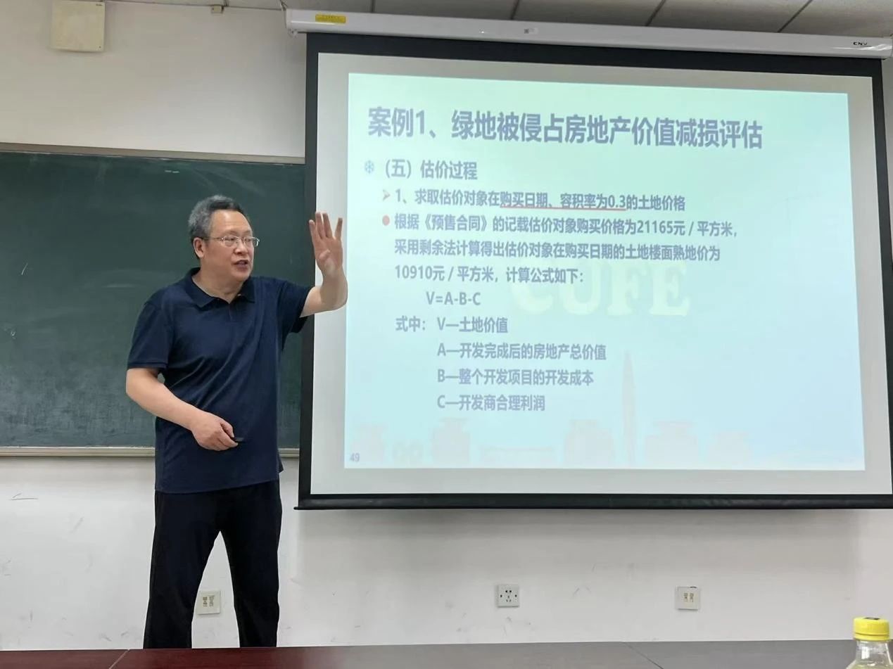 讲座的伊始,唐章奇先生便抛出了一个引人入胜的案例——“天价葡萄案”。2003年,某科研所历经10年培育研制的葡萄新品种被偷摘,直接损失经评估折合单价500元/公斤,由此引发了一场争议的诉讼。他将这个案例分享给同学们,鼓励大家积极讨论交流,借以引发同学们对涉诉资产评估的深入思考。随后,便开始结合案例讲解涉诉资产评估的法律法规、评估专业人员的法律责任,让同学们对资产评估过程中法院的相关规定有了初步且较为清晰的了解。接着,唐章奇先生通过“环境污染造成的损失案例”,详细阐述了涉诉资产评估的特点和方法。紧接着,他又以“绿地被侵占房地产价值减损评估”为例,进行了精彩的案例分析。