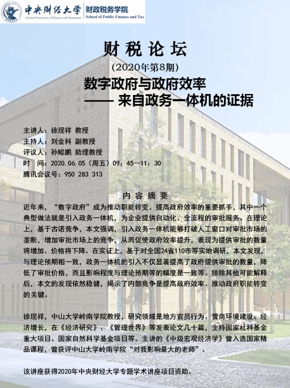 【财税论坛】数字政府与政府效率——来自政府一体机的证据