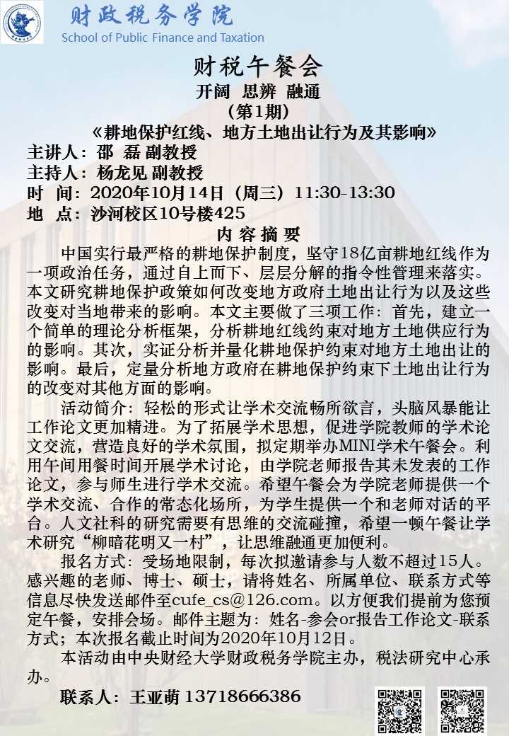 【财税午餐会】耕地保护红线、地方土地出让行为及其影响