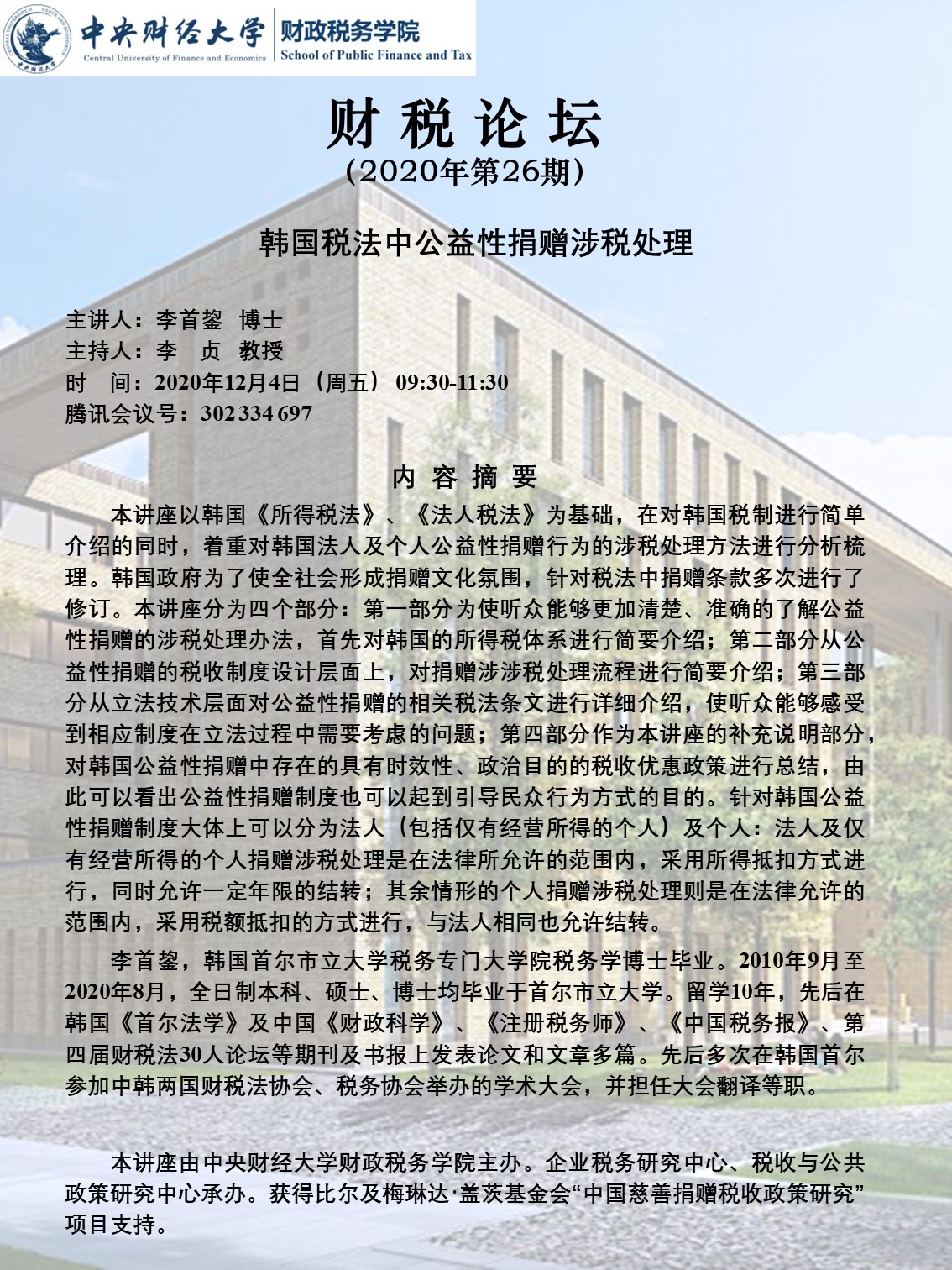 伟德国际1946bv召开“韩国税法中公益性捐赠涉税处理”财税论坛