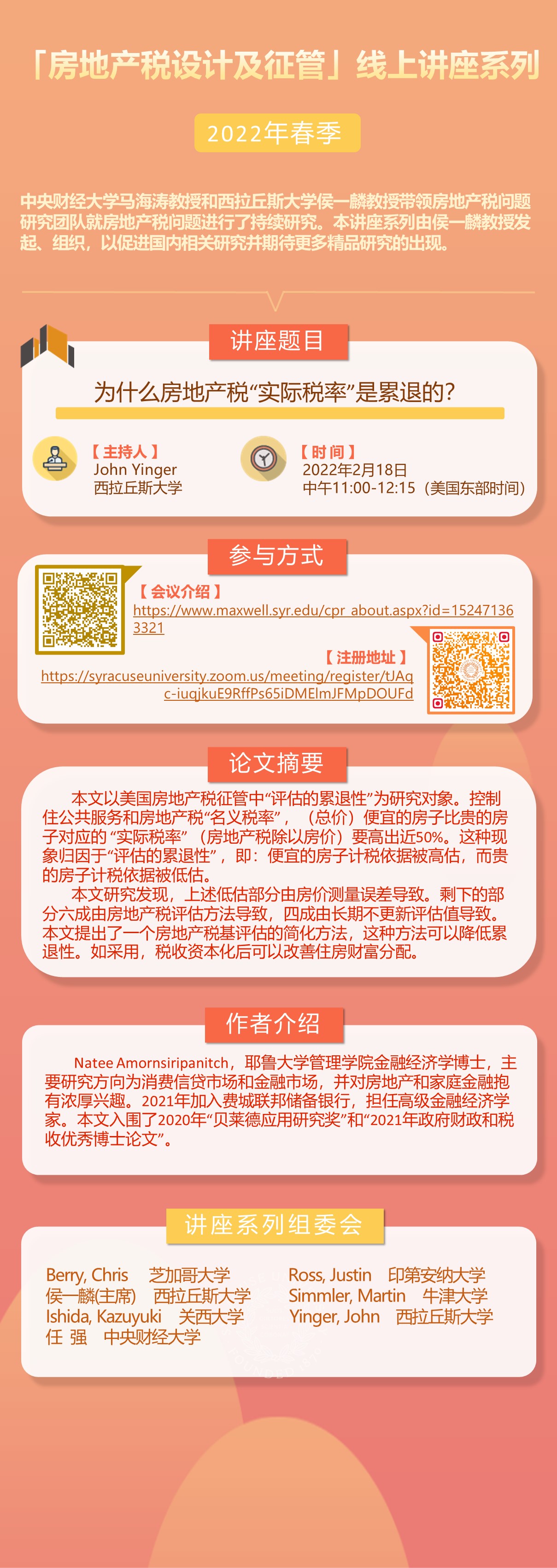 “房地产税设计及征管”线上讲座系列2022年春季——为什么房地产税“实际税率”是累退的?