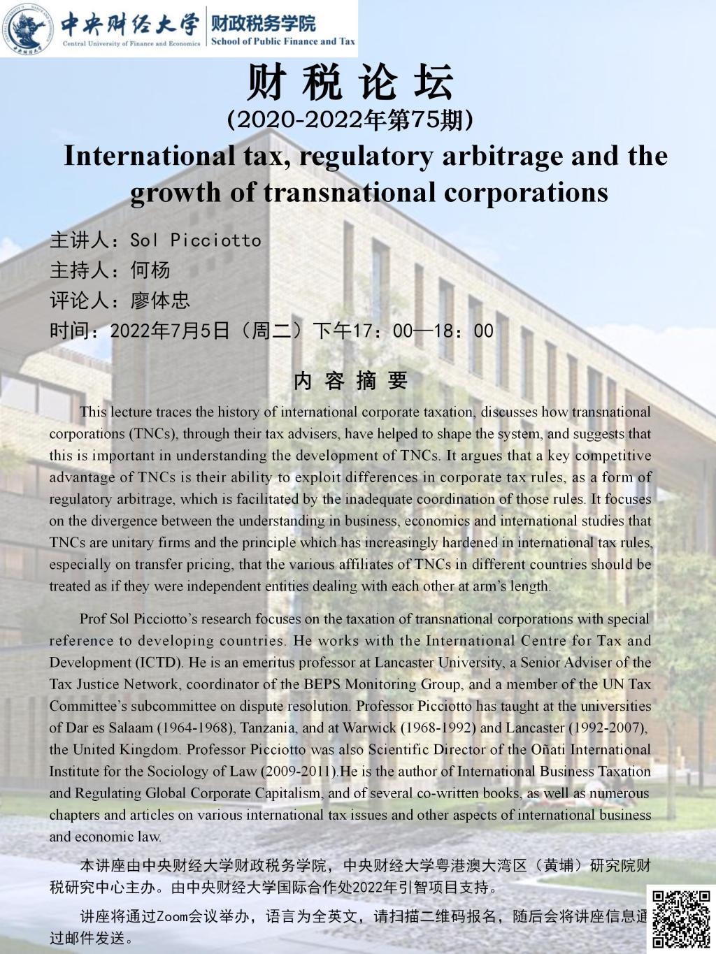 【财税论坛】International tax, regulatory arbitrage and the growth of transnational corporations