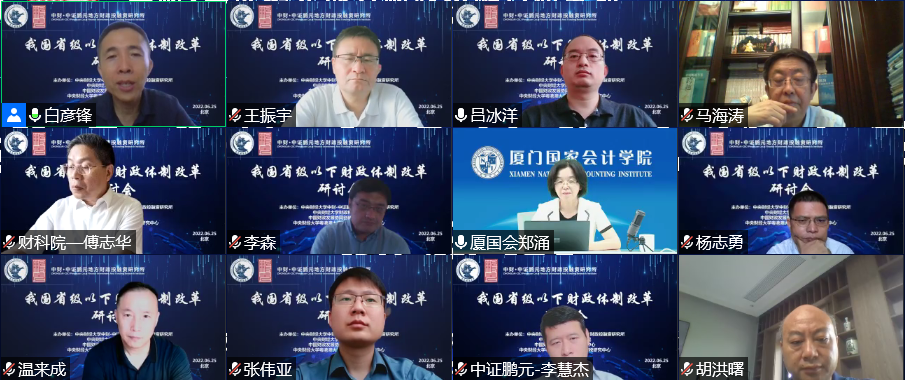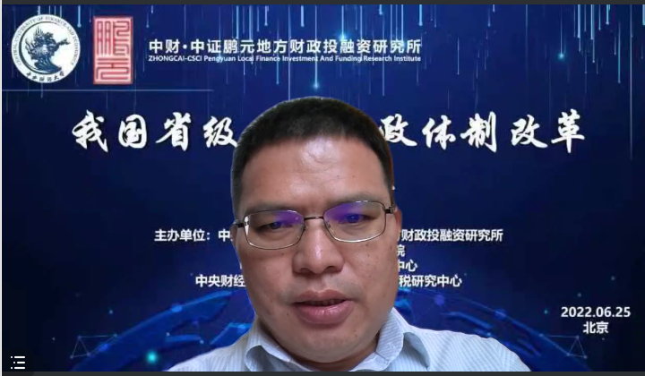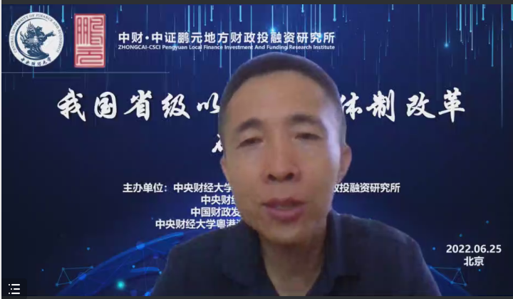 2022年6月25日,由中央财经大学中财-中证鹏元地方财政投融资研究所、伟德国际1946bv、中国财政发展协同创新研究中心、伟德victor1946粤港澳大湾区研究院财税研究中心联合主办的我国省级以下财政体制改革研讨会在线上成功举办。来自中国社会科学院、中国财政科学研究院、厦门国家会计学院、中国人民大学、辽宁大学、山东财经大学、中南财经政法大学、伟德victor1946,以及中证鹏元资信评估股份有限公司的十几位专家学者进行了发言。来自全国各地的专家学者、学生,以及社会各界人士7200多人通过腾讯会议、百度直播参加了研讨会。