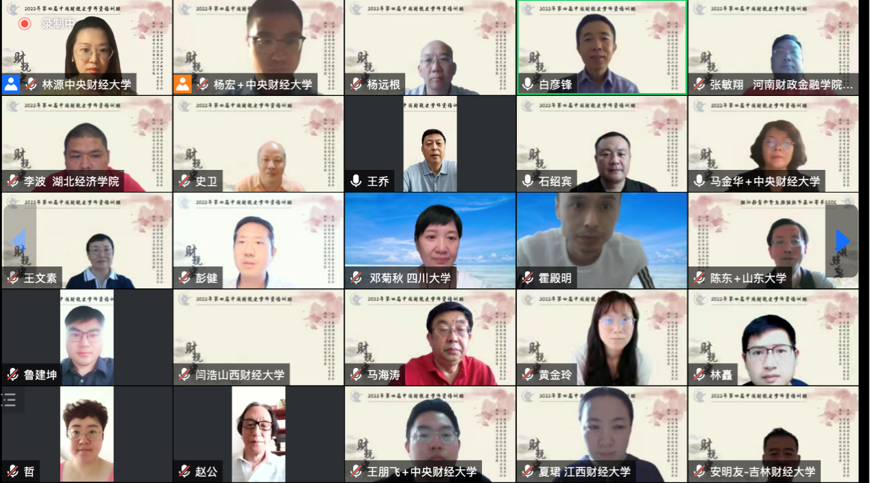 名本届中国财税史学师资培训班学员参加了线上结业仪式。