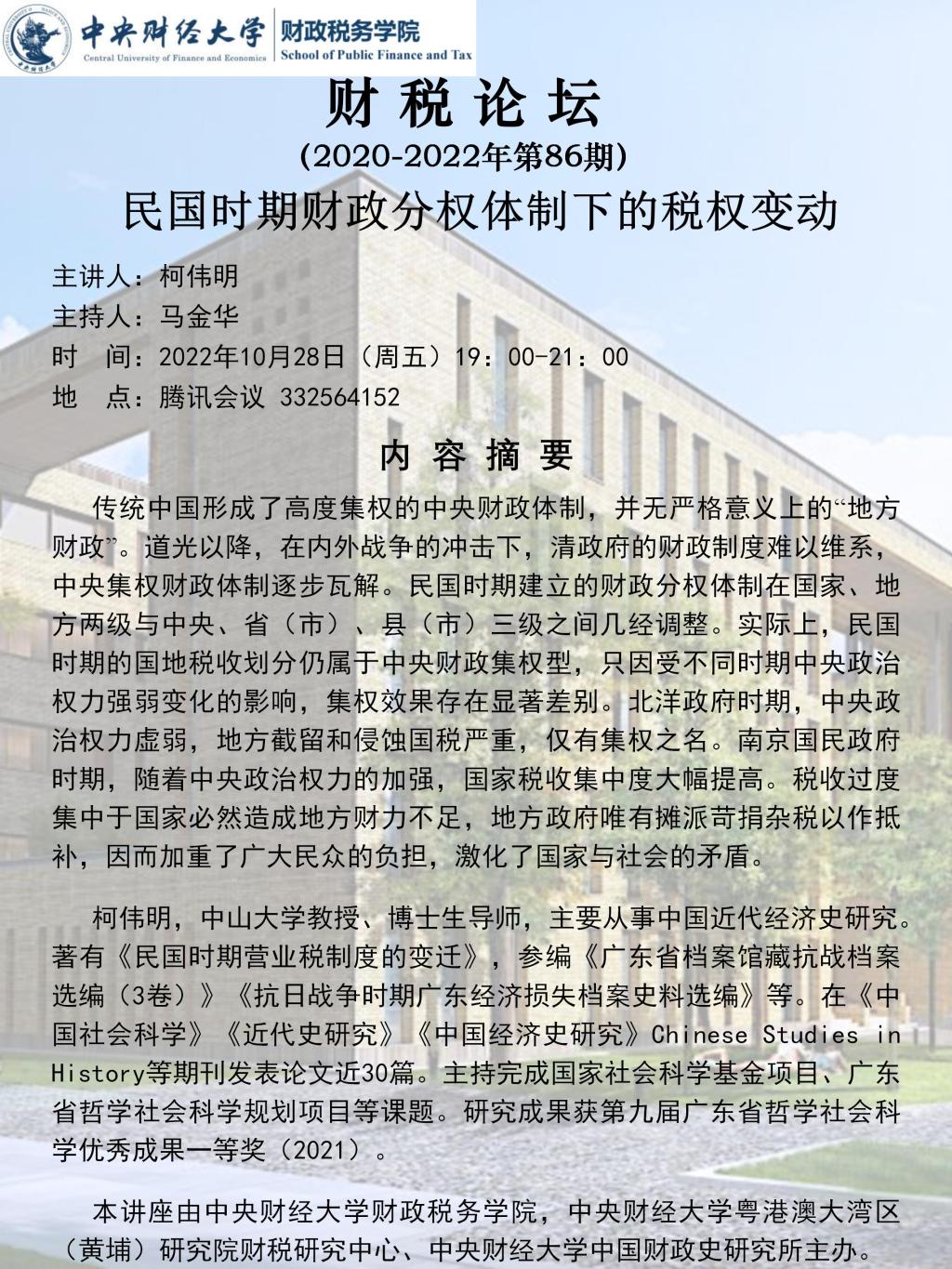 伟德国际1946bv举办“民国时期财政分权体制下的税权变动”学术讲座