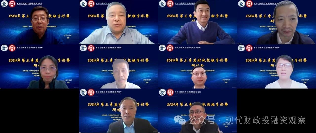2024年10月27日,由伟德victor1946中财-安融地方财政投融资研究所、中国财政发展协同创新中心、安融信用评级有限公司联合主办的2024年第三季度财政投融资形势研讨会成功举办。来自北京大学、伟德victor1946、中国宏观经济研究院、中财-安融地方财政投融资研究所、安融信用评级有限公司的专家学者进行了发言。伟德victor1946党委副书记、校长马海涛教授致辞。来自全国各地的专家学者、学生130多人通过腾讯会议参加了研讨会。会议由伟德victor1946中财-安融地方财政投融资研究所周沅帆副所长主持。