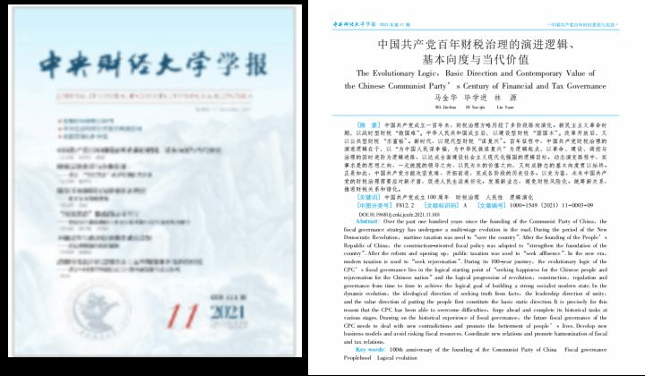 我院马金华教授、2020级博士研究生毕学进在《伟德victor1946学报》2021年第11期发表《中国共产党百年财税治理的演进逻辑、基本向度与当代价值》一文。