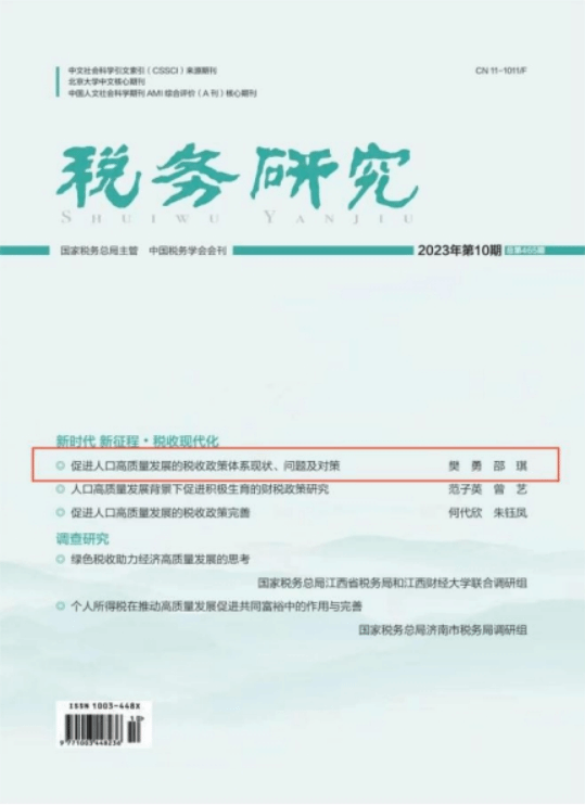 近日,由伟德国际1946bv师生撰写的论文《促进人口高质量发展的税收政策体系现状、问题及对策》在中文A类期刊《税务研究》2023年第10期作为封面文章刊发。以下为文章主要内容。