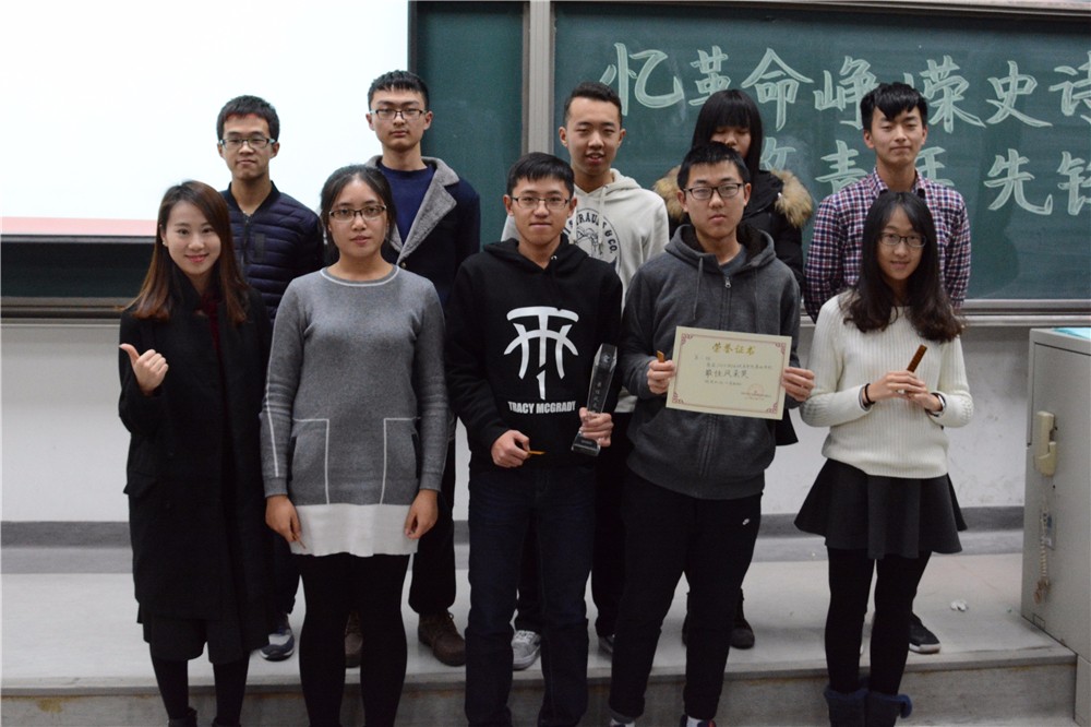 最后是激动人心的颁奖环节。首先颁布的是本次话剧汇演的最佳风采奖,第二组同学凭借其精彩的表演夺得该奖项。该组学员演绎了一个假医务兵为了谋生混入红军队伍,见死不救,最终在一系列荒唐的梦中领悟了红军战士的伟大,与敌人同归于尽的故事。短剧结构精巧,演员们演技高超,引得台下观众们笑声连连。马江聆老师为获最佳风采奖的小组颁奖。第二个奖项是本次基础团校活动的优秀学员,来自各组的学员们凭借其在本次活动中的辛勤付出和从中体现出的责任感而摘得这一荣誉。最后是优秀集体奖,这一奖项由在各个活动中表现优异的第三组和第七组的同学活动。蒋绮雯老师为优秀学员和优秀集体奖代表学员颁奖。