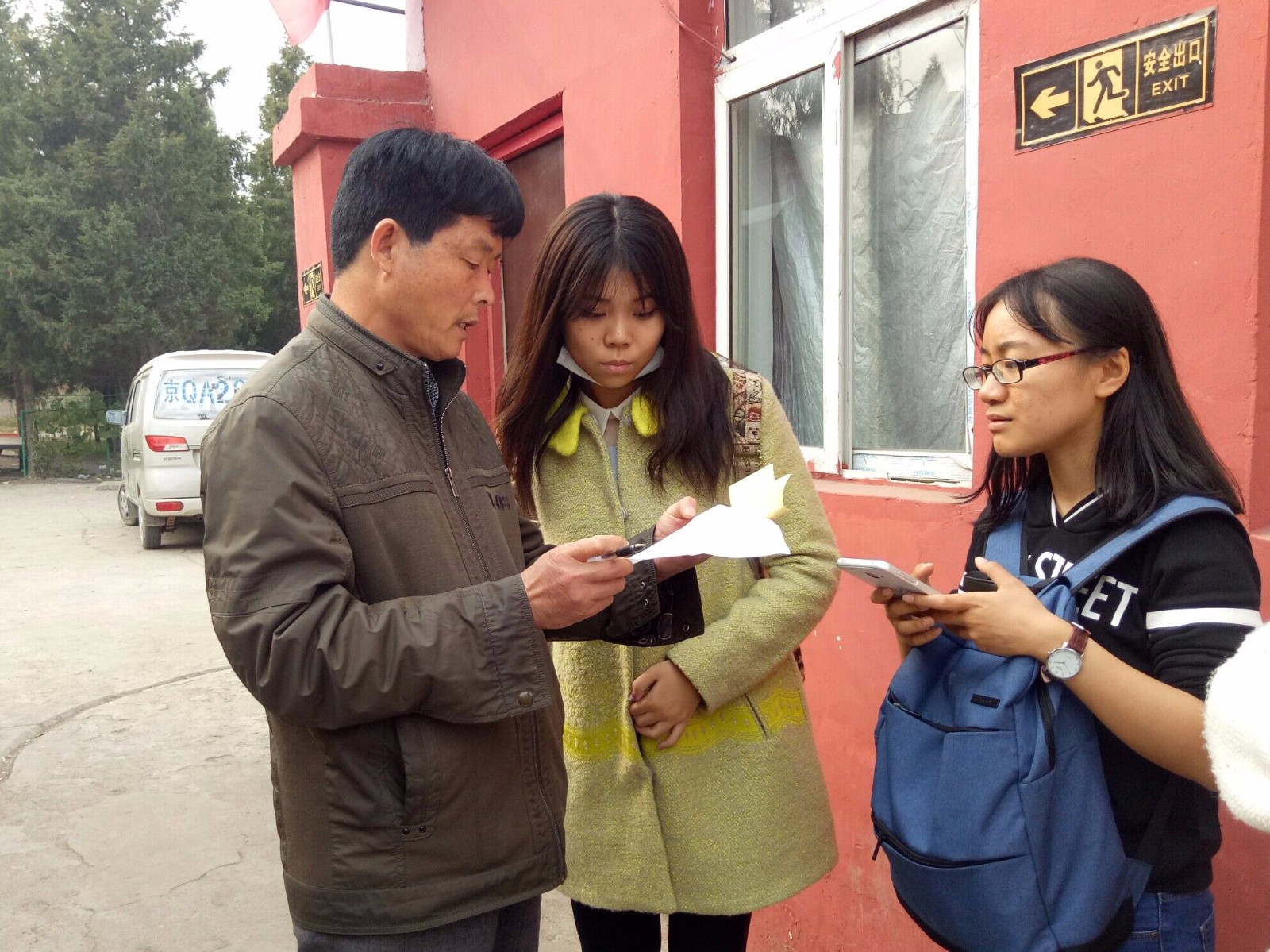 经过了一个多小时的路程,大家终于到达了希望小学。走进学校,志愿者们见到了满怀期待与好奇的孩子们。京豫希望小学的校长接待了志愿者们,并与负责人确认了志愿辅导的相关信息。而后,志愿者们根据安排分为了10个小组,每个小组负责一位学生。各小组成员跟随学生前往他们的家中,了解学生家庭住址和具体情况。