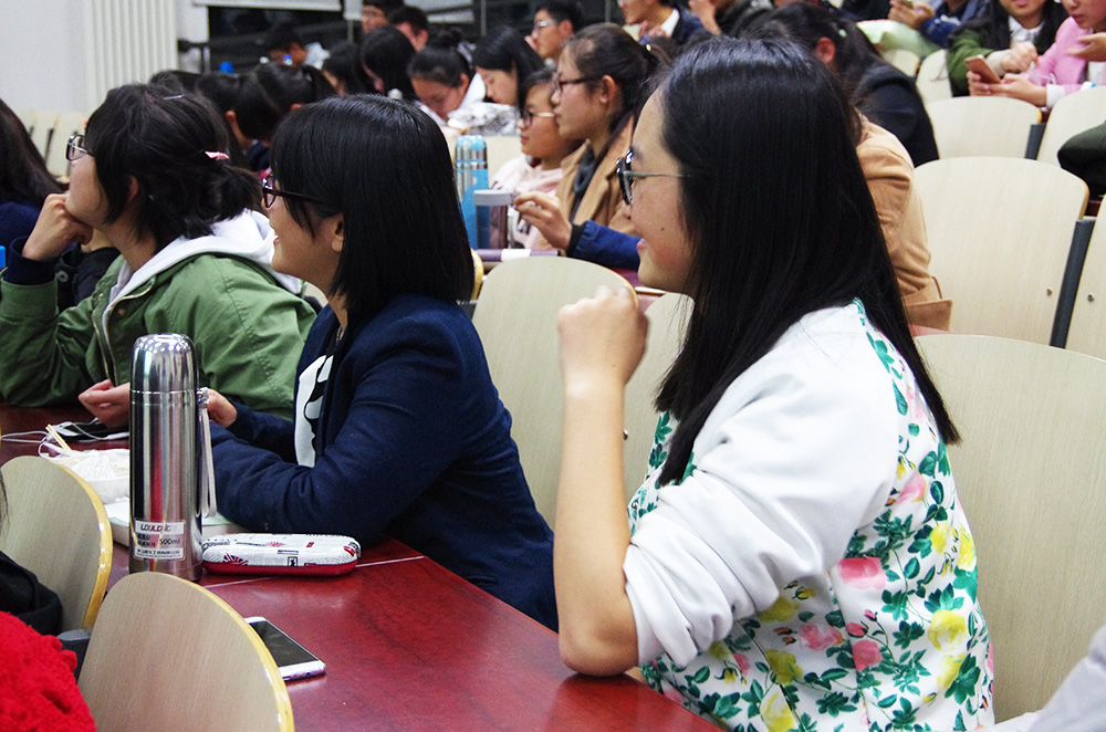 第二个游戏是默契比拼。同样是三组同学参与这个活动,每组都是在活动中被守护的人和他的天使。大屏幕上打出五个考验默契的问题,每组的同学背对背在白板上写下问题的答案,若两人回答一致则记为正确,反之错误。最终垫底的小组同样接受残酷的惩罚,这次考验男生魅力的时刻来了。女生坐在男生身上,男生要做三个俯卧撑。同学们纷纷起哄,被惩罚的男生也艰难地完成了任务。最后是揭晓本次活动中的守护达人,并由蒋绮雯老师为他们颁奖。