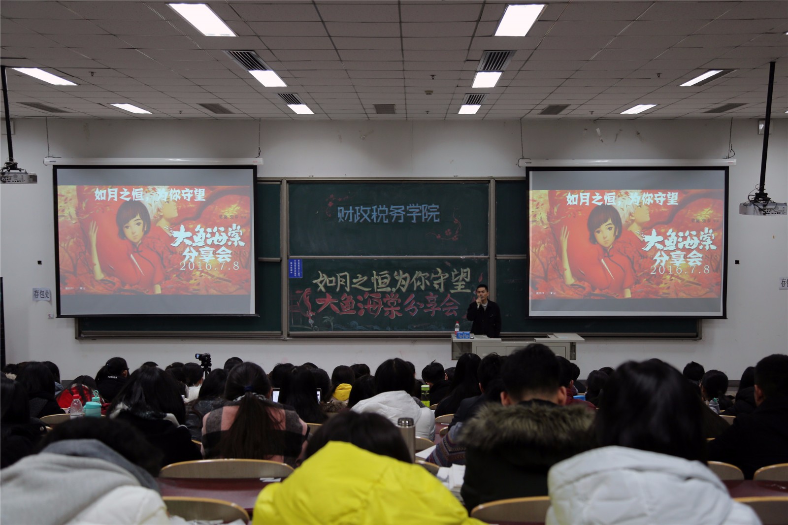 宣传会开始之前,到场的同学们观看了梁旋导演拍摄《大鱼海棠》过程的短片,这一路上的欢笑与泪水,苦难与荣耀,这一切都深深地触动了在场的师生,为之后梁旋导演与同学们的积极互动奠定了情感基础。