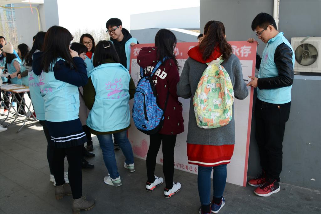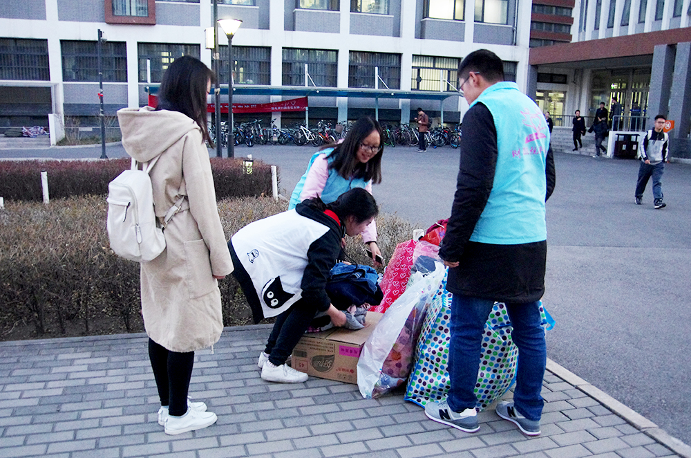 3月8日中午,伟德国际1946bv团总支学生会青协的同学们在沙河校区东、西区食堂门口举行了现场捐衣活动,团总支学生会秘书处、组织部的同学协助举办了此次活动。身着蓝色志愿者马甲的青协同学们早早摆放好了桌椅、易拉宝和签字版,等待捐衣同学的到来。随着下课铃声的响起,向食堂走来的同学渐渐多了起来,青协的志愿者们开始向经过的同学发放宣传单,热情介绍此次捐衣活动。很多同学前来咨询活动的详细信息,青协的同学们都一一给予了耐心的解答。经过咨询后,许多同学立刻赶回寝室整理准备捐赠的衣物,随后将它们带到了捐赠现场。参与捐赠的同学和老师纷纷在签名板上留下自己的签名,作为自己爱心的见证。3月9日下午,捐衣活动继续在东区、西区同时进行。在青协志愿者们的宣传下,有更多的同学将自己闲置的衣物捐赠出来。仅仅一个下午,空地上就堆满了衣物。当天晚上,财税学院团总支学生会的同学们共同将在西区收集的衣物搬到东区。尽管衣物沉重,但所有参与活动的同学们都不觉疲累。3月10日、11日,活动持续进行,不断有同学前往捐衣点捐出衣服,用自己的实际行动表达对此次活动的支持。