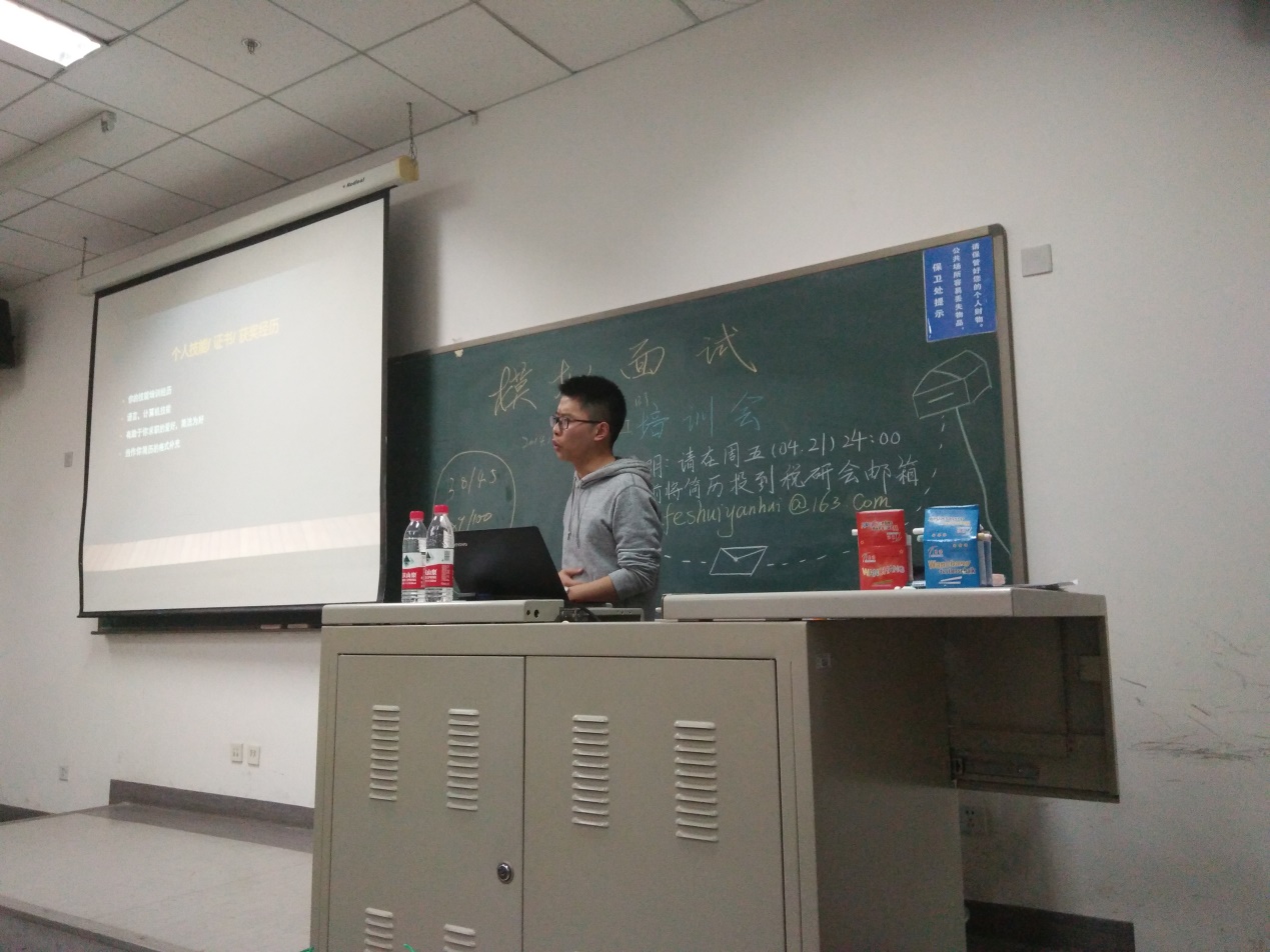 4月17日晚,赛前培训于主教307教室顺利举行。赛前培训有幸邀请到王开怀老师来为参赛选手们进行赛前辅导、传授面试经验。王开怀老师主要从简历撰写以及小组面试两个方面对同学们进行了指导,并以自身经验为例指导同学面试礼仪及面试注意事项。