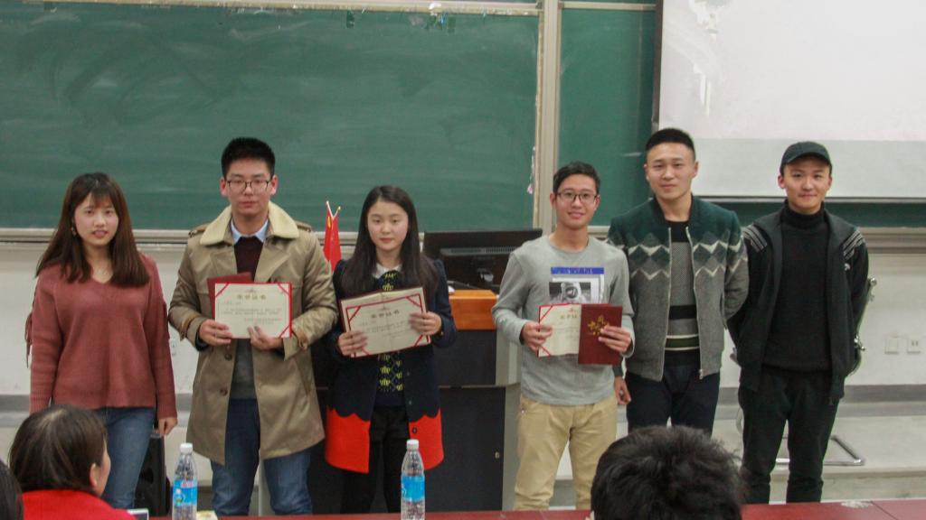 一分钟陈述结束之后,由组织部王子卓同学宣布最佳代表人选,安徽省代表严春浩、贵州省代表柳连源、江苏省代表王誉桦入选并上台领奖,合影留念。最后,主持人刘天颀宣布本次伟德国际1946bv十九大团课暨基础团校模拟人大活动圆满结束。