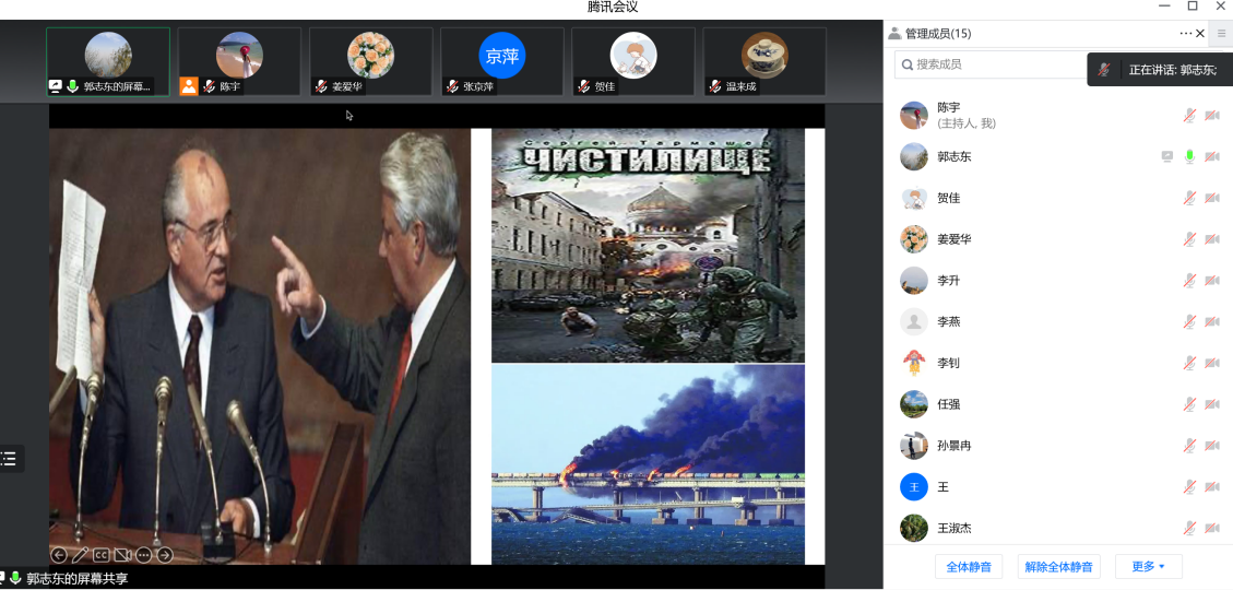 党的二十大召开在即,根据学校文件精神以及学院党委工作安排,国际税收系党支部与财政管理系党支部于2022年10月10日晚7:00通过腾讯会议联合举办了迎接党的二十大主题宣传教育活动。会议的议题有三项,一是国际税收支部郭志东老师报告党史学习专题《历史自信与中国特色社会主义道路》 ;二是支部党员就“强国有我新征程,喜迎党的二十大”展开讨论;三是财政管理支部书记姜爱华老师做会议总结。