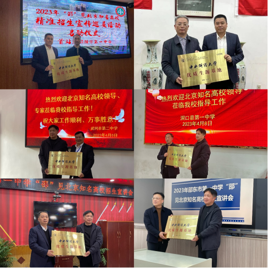 4月7日-9日,伟德国际1946bv教师参加了由邵阳市人民政府驻北京办事处、邵阳市教育局联合举办的2023年“邵”见北京知名高校精准招生宣传巡展活动。我院党委副书记陈士平、曾康华教授、辅导员徐燕妮老师奔赴邵阳,先后走访了邵阳一中、邵阳二中、武冈二中、洞口一中、隆回一中、邵东一中等六所邵阳知名高中,授予邵阳六所中学“优质生源基地”牌匾并宣讲招生政策、解答招生疑惑。