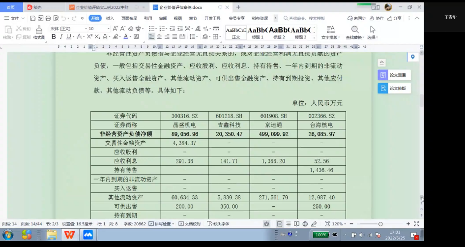 2022年4月-6月期间,我院“资产评估大讲堂”系列讲座于每周三下午通过腾讯会议线上举办。副院长李小荣教授邀请了来自资产评估实务领域的各位专家,就评估案例与实务同2021级资产评估专业硕士的同学们进行了深入交流。