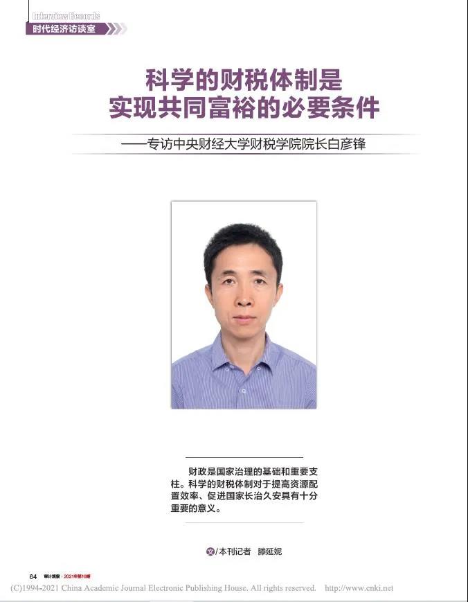 2021年10月,伟德国际1946bv院长、中国财政发展协同创新中心主任白彦锋教授就“科学的财税体制是实现共同富裕的必要条件”专题,接受了《审计观察》的采访。全文如下: