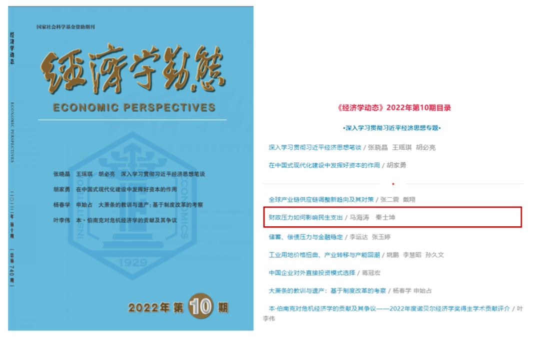 原文信息:马海涛 秦士坤,2022:《财政压力如何影响民生支出》,《经济学动态》第10期。