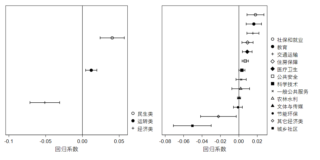 图1 财政压力对不同支出类别的影响系数