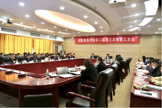 伟德国际1946bv院长樊勇向全体教职工做学院2023年工作报告及2023年财务报告,总结了学院过去一年在党建引领、业务发展等各项工作的成果,传达学校2024年工作要点,结合财税学院实际,统筹规划2024年财税学院工作安排,鼓励大家补齐短板、保持优势。