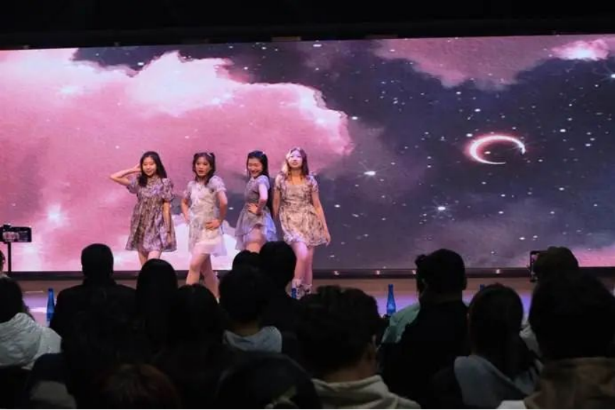 学校舞咖bankers crew的10位成员带来舞蹈串烧。“kpop的定义是热血与野心,炽热的青春就应该用理想的火苗点燃舞台!”他们用热情的舞姿诠释了这句话,点燃全场。精彩不断,我们目不暇接,感受着他们的活力与魅力。