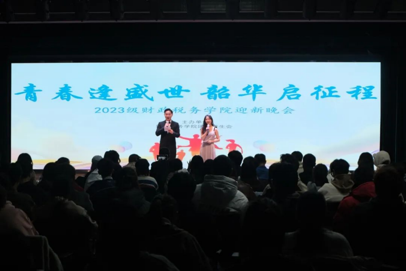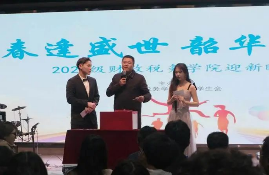 11月8日晚,伟德国际1946bv2023年迎新晚会于大伟德国际中心精彩上演。本次晚会由院文体部策划与主办,学生会其他部门协办。学院党委副书记陈士平老师、学院团委书记吕一琪老师、23级辅导员徐燕妮老师、23级班主任邵磊、孙景冉老师以及第八届主席团成员姚军历、尹一凡、徐馨悦、张欣阳,与200余名同学一起观看了本次演出。晚会分为“灼灼华年,遇见财税”“孜孜求索,启航财税”和“熠熠生辉,逐梦财税”三个篇章;特别添加“家长寄语播放”和“中场抽奖”环节。
